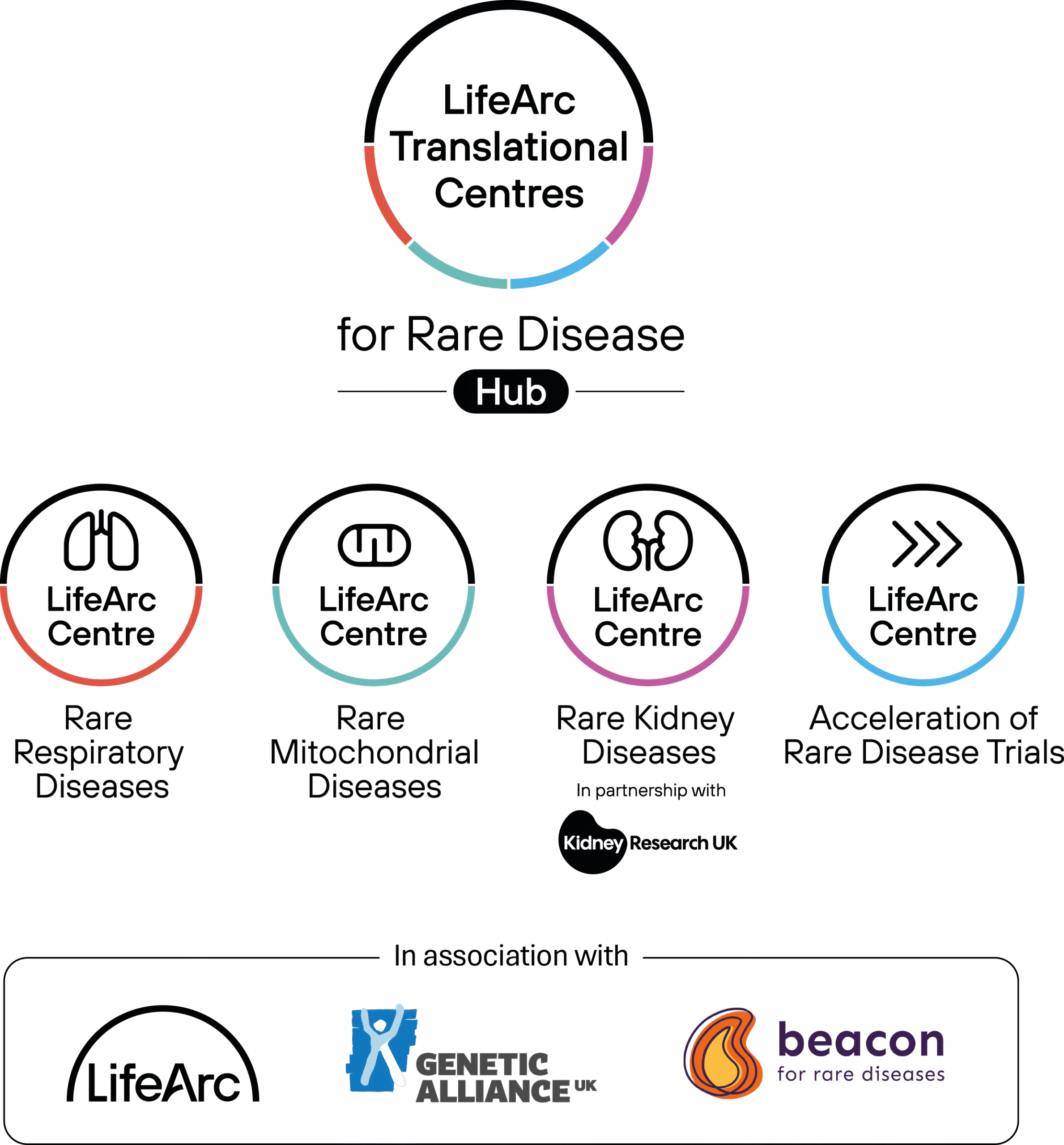 The cross-Centre Hub brings together the expertise of LifeArc, Beacon for Rare Diseases and Genetic Alliance UK to: